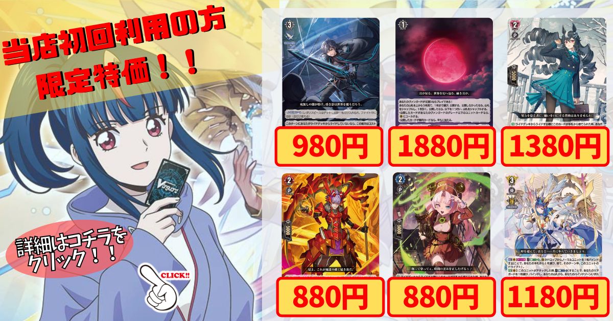 おすすめ商品 純黒の影は闇に蠢く 赫月光 凛冽なる願いヴァルシュブラン ドラグリッターハビタブルゾォン スチームメイデンスパイラルキューティ 聖なる時の運命者リィエル=ドラコニス《当店初利用の方限定特価品》 [《当店初利用の方限定特価品》純黒の影は闇に蠢く 赫月光 凛冽なる願いヴァルシュブラン ドラグリッターハビタブルゾォン スチームメイデンスパイラルキューティ 聖なる時の運命者リィエル=ドラコニス] 880円~1,880円(税込) プレイマット『ちほうかっぷ金沢2026.4.11』【-】{-}《サプライ》 [サプライ] 5,980円(税込) 在庫数 1個 四精織り成す清浄の盾【PR】{D-PR/1497_3rd}《その他》 [エレメンタリアサンクティテュード] 298,000円(税込) 在庫数 1枚 プレイマット『明星エリカ(DELUXE2025)』【-】{-}《サプライ》 [サプライ] 32,800円(税込) 在庫数 1個 エネルギージェネレーター(明星エリカ)【PR】{D-PR/1496}《その他》 [エネルギージェネレーター] 328,000円(税込) 在庫数 1枚 エネルギージェネレーター(員弁ナオ)【PR】{D-PR/851}《その他》 [エネルギージェネレーター] 94,800円(税込) 在庫数 1枚 ダークステイツ(リィエル=オディウム)【ver1.1】{-}《デッキ販売》 [ダークステイツ(リィエル=オディウム)] 45,400円(税込) 在庫数 1枚 ダークステイツ(ハートルールー)【ver1.1】{-}《デッキ販売》 [ダークステイツ(ハートルールー)] 21,400円(税込) 在庫数 1枚 ストイケイア(リアノーン)【ver1.5】{-}《デッキ販売》 [ストイケイア(リアノーン)] 21,800円(税込) 在庫数 1枚 BanGDream!(RAISEASUILEN)【ver1.0】{-}《デッキ販売》 [BanGDream!(RAISEASUILEN)] 5,400円(税込) × スリーブ『WGPデラックス2025Season2アイスブルー(エクストラVol.166)』80枚入り【-】{-}《サプライ》 [サプライ] 2,980円(税込) 在庫数 20個 スリーブ『ちほうかっぷ仙台2026.3.14』53枚入り【-】{-}《サプライ》 [サプライ] 980円(税込) 在庫数 1個 スリーブ『黒衣の戦慄ガウリールPart.2(Vol.489)』70枚入り【-】{-}《サプライ》 [サプライ] 2,480円(税込) 在庫数 1個 パワーカウンター『黒』2個セット【-】{-}《サプライ》 [サプライ] 1,380円(税込) 在庫数 80個 パワーカウンター『ピンク』2個セット【-】{-}《サプライ》 [サプライ] 1,480円(税込) 在庫数 201個 〔状態A-〕エネルギー(員弁ナオ)【PR】{D-PR/1626}《その他》 [[状態A-]エネルギー] 11,800円(税込) 在庫数 1枚 エネルギー(先導アイチ)【PR】{D-PR/1611}《その他》 [エネルギー] 6,980円(税込) 在庫数 3枚 紅蓮に染まりし、黙示録の炎【PR】{D-PR/1214}《ドラゴンエンパイア》 [スカーレットフレイム] 1,080円(税込) 在庫数 147枚 星海より手繰る星霧騎士の道【PR】{D-PR/1247}《ケテルサンクチュアリ》 [セイカイヨリタグルネビュラナイトノミチ] 3,480円(税込) 在庫数 2枚 せるがおん【TD】{DZ-SS14/009}《ケテルサンクチュアリ》 [セルガオン] 1,580円(税込) 在庫数 33枚 ドラグリッターミグダルド【ORRR】{DZ-SS11/001}《ドラゴンエンパイア》 [ドラグリッターミグダルド] 980円(税込) 在庫数 27枚 堕落葬裁ヴァラック【ORRR】{DZ-SS11/002}《ダークステイツ》 [ダラクソウサイヴァラック] 980円(税込) 在庫数 40枚 ヴェイルメール・エクスオルディア【ORRR】{DZ-SS11/003}《ブラントゲート》 [ヴェイルメールエクスオルディア] 480円(税込) 在庫数 61枚 聖白の騎士イスクディート【ORRR】{DZ-SS11/004}《ケテルサンクチュアリ》 [セイビャクノキシイスクディート] 880円(税込) 在庫数 48枚 相思の乙女パンセ【ORRR】{DZ-SS11/005}《ストイケイア》 [ソウシノオトメパンセ] 1,780円(税込) 在庫数 49枚 とびきりの愛で抱きしめてオクタヴィア【ORRR】{DZ-SS11/006}《リリカルモナステリオ》 [アマンテースアーメンテースオクタヴィア] 980円(税込) 在庫数 51枚 決意と罪を抱く者リィエル_アニムス【SEC】{DZ-BT13/SEC03}《ダークステイツ/ケテルサンクチュアリ》 [ケツイトツミヲイダクモノリィエル_アニムス] 89,800円(税込) 在庫数 4枚 時の宿命者リィエル=オディウム【SEC】{DZ-BT05/SEC02}《ダークステイツ》 [トキノシュクメイシャリィエル_オディウム] 89,800円(税込) 在庫数 7枚 聖なる時の運命者リィエル=ドラコニス【SEC】{DZ-BT10/SEC04}《ケテルサンクチュアリ》 [セイナルトキノウンメイシャリィエル_ドラコニス] 64,800円(税込) 在庫数 10枚 クロノジェット・ドラゴン【SNR】{DZ-BT06/SNR01}《ダークステイツ》 [クロノジェットドラゴン] 648,000円(税込) 在庫数 1枚 もっと見る