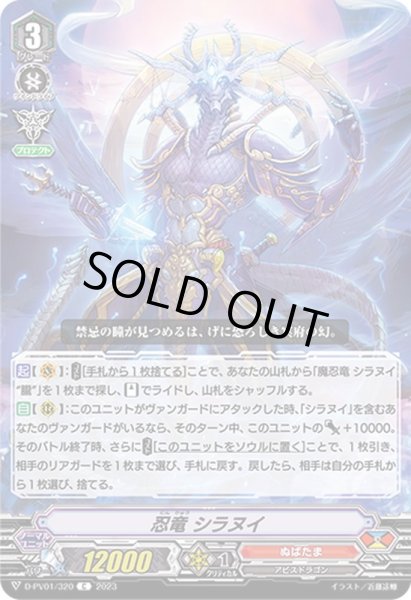 【起】【(V)】:【コスト】[手札から1枚捨てる]ことで、あなたの山札から「魔忍竜 シラヌイ “朧”」を1枚まで探し、【スタンド】でライドし、山札をシャッフルする。【自】【(R)】:このユニットがヴァンガードにアタックした時、「シラヌイ」を含むあなたのヴァンガードがいるなら、そのターン中、このユニットのパワー+10000。そのバトル終了時、さらに【コスト】[このユニットをソウルに置く]ことで、1枚引き、相手のリアガードを1枚まで選び、手札に戻す。戻したら、相手は自分の手札から1枚選び、捨てる。