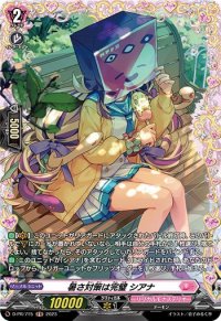 【自】:このユニットが(R)に登場した時、相手の前列のリアガードを1枚選び、手札に戻してよい。【自】【(R)】:このユニットがヴァンガードにアタックした時、「シアナ」を含むあなたのヴァンガードがいるな…