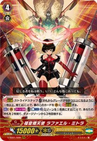 【自】:このユニットが、(V)に登場した時かライドされた時、【コスト】[【カウンターブラスト】(1),手札から1枚捨てる]ことで、相手のリアガードを1枚選び、呪縛する。あなたのダメージゾーンが4枚以上…