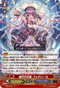 【永】【(V)】:このユニットがパワー35000以上なら、このユニットのクリティカル+1。【自】【(V)/前列の(R)】:あなたのドライブチェックでグレード3が出たバトル終了時、そのバトルで相手が守護…