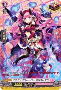 【自】【(V)】:このユニットがアタックした時、【コスト】[【ソウルブラスト】(1)]することで、あなたのリアガードを2枚まで選び、手札に戻す。【自】【(V)】:このユニットがアタックしたバトル終了時…