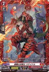 【永】【(R)/(G)】:「フラッグバーグ」を含むあなたのヴァンガードがいるなら、このユニットのパワー+2000/シールド+5000。(相手ターンも有効)
